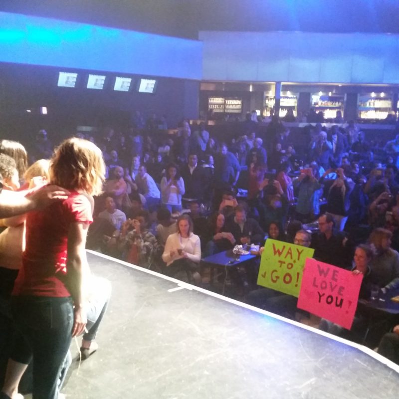 Fear Experiment℠ (FE) is a unique way to create community, push oneself, learn something new, and have fun. Strangers come together to learn an art form, rehearse for two and a half months, and then are rock stars for a night, in front of hundreds. For people not looking to be the next Baryshnikov or Tina Fey but looking to challenge themselves, meet others, and have a consistent source of laughter and support.