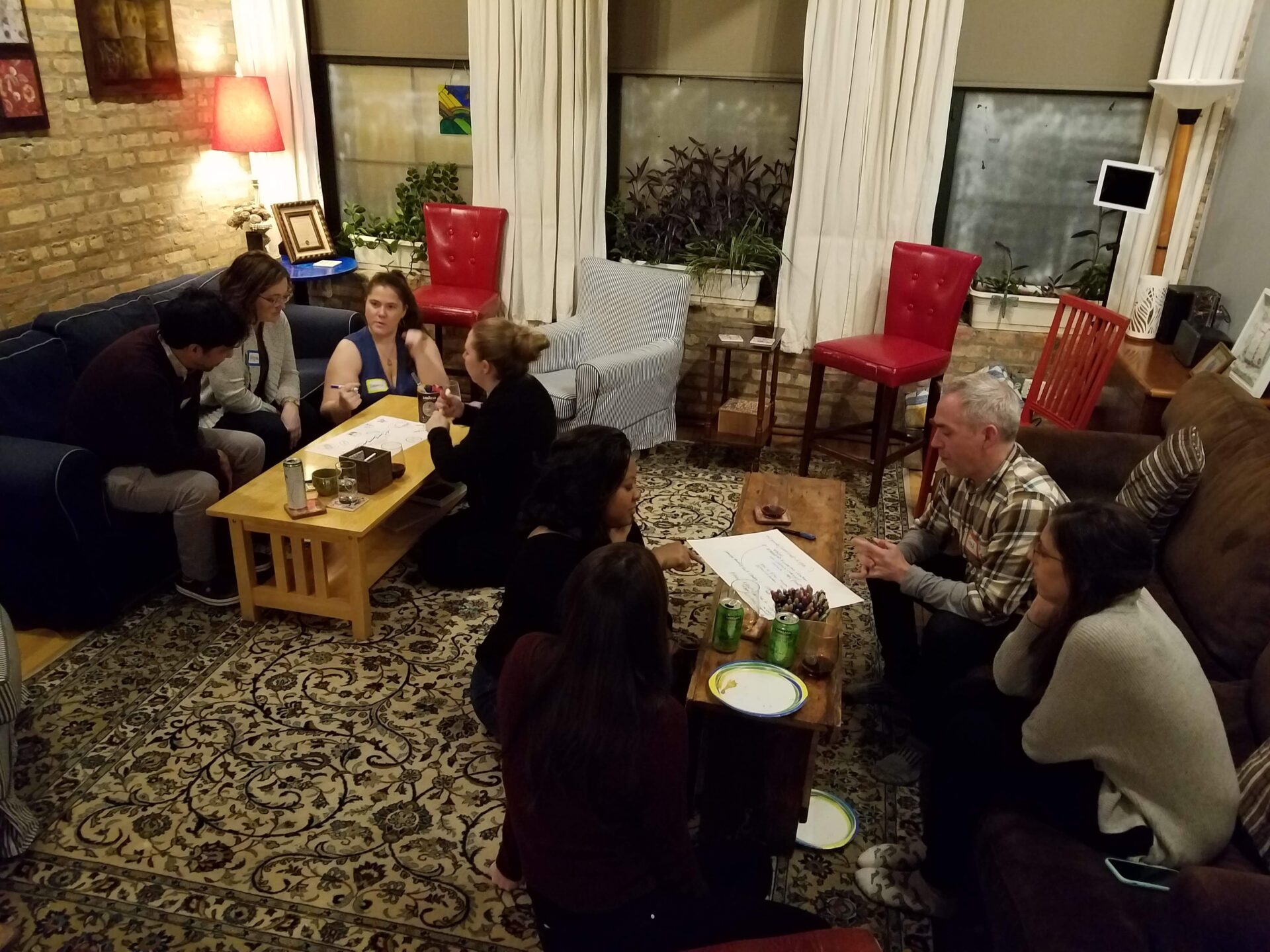 It’s much easier to be yourself seated, in comfy pants, not shout-talking. And you being yourself surrounded by others being themselves is the foundation for quality connection.