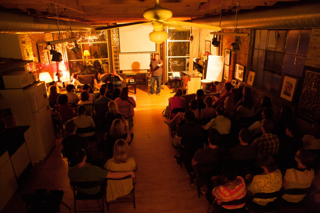 Dishes range from people who’ve never spoken in front of others and think all eyes on them sounds horrible to professional limelighters. From everyday regular folk to author Samantha Irby, actor Abby McEnany, the founder of Threadless, head writers for Cards Against Humanity, comedian Jeff Arcuri, the founder of aSweatlife, a Book of Mormon actor, a writer for The Problem with Jon Stewart, and the founder of You Are Beautiful.