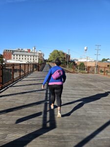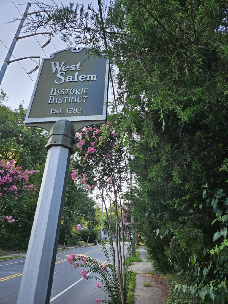 Cobblestone Farmer’s Market is every Saturday, year-round. Salem Bottleworks is a converted Coca-Cola bottling factory that now houses a pizzeria, ramen shop, and bakery, with tons of additional space whose future is excitingly TBD. Old Salem is an 18th-century Moravian town brought to life through costumed interpreters, preserved buildings, gardens, and working trades. Truist Stadium, home to the minor league baseball team, connects to West Salem via a new pedestrian bridge. Camino, ByGood, and Lot 63 are cozy coffeehouses. For adult beverages, there’s low-key West Salem Public House and Easytalk. There’s a yoga studio and a BBQ restaurant. The Strollway offers a scenic 1.2-mile route linking downtown to the area, and connects to the Salem Creek Greenway, which extends five miles and ties into a larger 27-mile loop including the hiker and biker’s dream, Salem Lake. A forest preserve is on my regular walk route. Granville Park and Washington Park offer tennis, pickleball, basketball, softball, doggy areas, and picnic spots. Two corner grocery stores have transformed into a charming Airbnb and hotel. Visit Winston-Salem, the city’s tourism office, and MUSE, the soon to be opened Winston Salem history museum, reside here, as do Carolina University and Salem College, the oldest women’s college in the US.