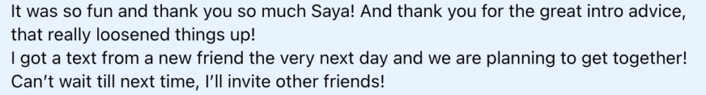 - In Saya Musings: Confidence | Community | Networking | Self-Love | Challenges, I have a “Ways I’ve ‘got out there’ in my new city” list